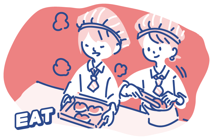食べる EAT 食品、外食産業など もてなす HOSPITALITY 観光、宿泊業など 創る CREATE 製造業、建設業など 支える SUPPORT 保育・介護など 楽しむ ENJOY エンターテイメント業など 届ける DELIVER 小売、流通、運輸など